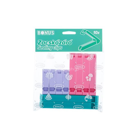 1 kép Bonus Zacskózáró csipesz, 10 db, BONUS, vegyes színek
