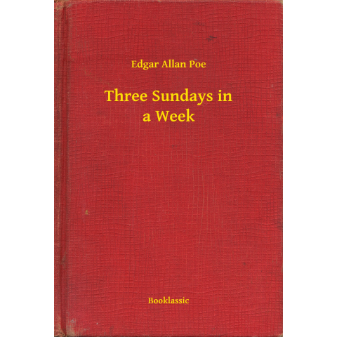 Three Sundays in a Week was written in the year 1841 by Edgar Allan Poe. This book is one of the most popular novels of Edgar Allan Poe, and has been translated into several other languages around the world.This book is published by Booklassic which bring