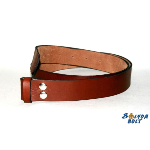 Vastag bőrből, díszek és csat nélkül. Patentos, 1db bújtatóval. 4 cm széles, 100 cm hosszú A szín eltérhet a képen láthatótól