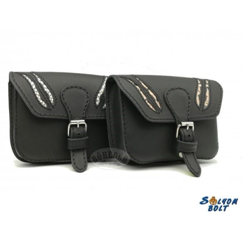 1 kép Bőregér Fekete, kígyóbőr betétes bőr övtáska, egyfakkos, csatos