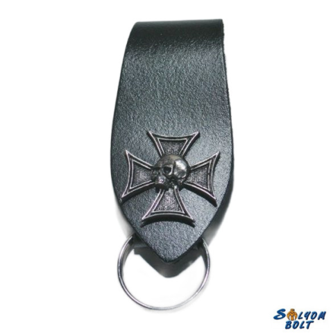 1 kép    Bőregér Máltai kereszt koponyával kulcstartó bőrből, nagyobb