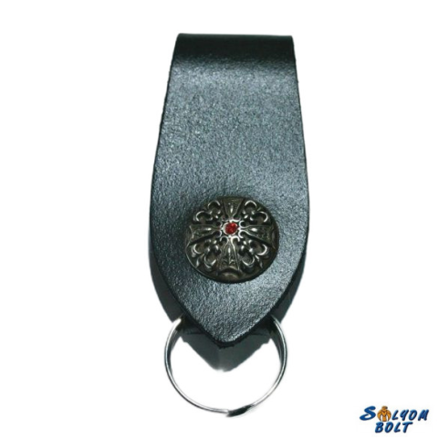 1 kép Bőregér Virágmintás kristályos kulcstartó bőrből, nagyobb