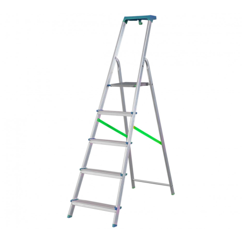 Alumínium létra BORMANN PRO - Anyag: Alumínium 6060 - Eszköztartóval - Csúszásmentes lépések és lábak - Biztonsági korlát és övek Maximális terhelhetőség kg-ban: 150 Lépcsők: 7 Extrák: Eszköztartó