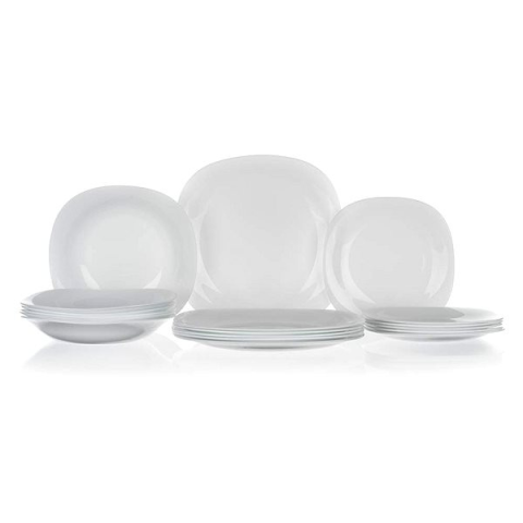 Étkészlet - 18 darabos készlet, a készlet tartalma 6 lapos tányér, 6 mély tányér, 6 desszert tányér, anyaga opálüveg, minta nélküli, mosogatógépbe és mikrohullámú sütőbe helyezhető Egy minőségi étkészlet fontos része konyhánk felszerelésének. A modern Bormioli étkezőszett nemcsak a mindennapi étkezéshez, hanem ünnepi alkalmakra is alkalmas lesz. Az étkészlet tartalma lapos tányé