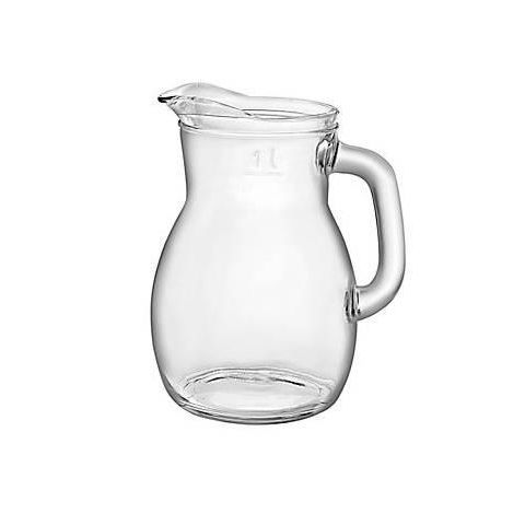 Bormioli üveg bisztró kancsó, űrtartalma: 1 liter. Mértékjellel ellátott. Méretei: 16X19X12 cm. Mosogatógépben mosható.