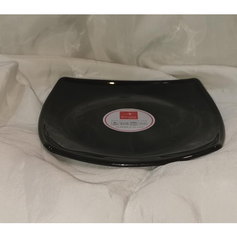 Fekete színű, szögletes formájú üveg desszertes tányér. Mérete: 176x176 mm. Mosogatógépben tisztítható, mikrózható.