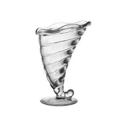 Üvegből készült Fortuna fagylaltkehely, design-os csavart csigaház formájú. Űrtartalma: 3,2 dl. A szett két darabot tartalmaz. Olasz minőség.