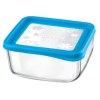 mikrózható 70C-ig, mosogatógépben tisztítható, fagyasztóban is használható szögletes tároló doboz. Űrtartalma: 160 cl. Mérete: 19x19 cm. Anyaga: üveg, kék színű műanyag tetővel.