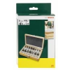 Bosch 15 részes TC marófej készlet (8 mm-es szár) (2607019469), lekerekítő maró, 1 él-/színelő maró, 2 félgömbölyű horonymaró, 1 profilmaró , 1 V-horonymaró, 1 színelő maró, 1 falcmaró, 4 horonymaró, 1 fogazómaró. Pontos illeszkedés és hosszú élettartam a kiváló minőségű keményfém vágóéleknek, az optimalizált vágóél-geometriának és a precíziós köszörülésnek köszönhetően. Tetszetős és áttekinthető fa tárolókofferben A készlet tartalma