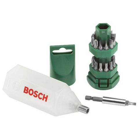 Csavarozófej készlet, 25 részes. - 24 csavarozófej, H = 25 mm PH 1/1/2/2/3/3 PZ 1/1/2/2/3/3 S 4/4/6/6/7/7 T 20/20/25/25/30/30 - 1 x univerzális tartó, mágneses - Tömeg: 0.25 kg - Méret (hxszxm): 170 x 50 x 50 mm