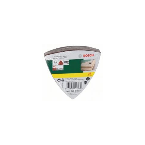 Bosch 25 részes csiszolólapkészlet deltacsiszolóhoz (2 607 019 488),szemcseméret 60. Ideális festék, lakk, fa, kő és autólakk csiszolásához sarkokban és felületeken. Tépőzáras rögzítési rendszerrel a gyors lapcseréhez és elszívólyukakkal a porelszíváshoz. A csomag 25 db-ot tartalmaz.