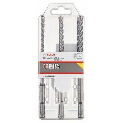 SDS-plus fúrószár készlet 3 darabos kalapácsfúró szár, alkatrészek, beton, kő, 6/8/10 mm, munkahossz 100 mm, teljes hossz 160mm A Bosch készlet 3 kiváló minőségű fúrószárat tartalmaz. Tökéletesen alkalmas falazathoz, betonhoz és vasbeton fúrásához. Rendkívül ellenálló keményfémből készültek, így valóban hosszú élettartamú
