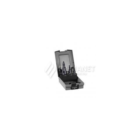 A Bosch HSS-AlTiN 3 darabos lépcsős fúrókészlet használható nemvasfémhez, acéllemezhez, műanyaghoz.Előfúrás nélkül a legvékonyabb lemezek megmunkálásához sorjamentesen, hidegen felhegedés nélkül. Köszörült fúró háromszögletű szárral. Az AlTiN bevonat alumíniumtartalma biztosítja a magas hőállóságot és az oxidációval szembeni ellenállást. A tartós, időtálló tartozékokat profi felhasználásra készítették a gyorsasági, ergonómiai, gazdaságo