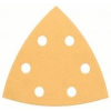Bosch deltacsiszolólap készlet, 93 mm. Szemcseméret P60. Ideális festék, lakk, fa, kő és autólakk csiszolásához sarkokban és felületeken.