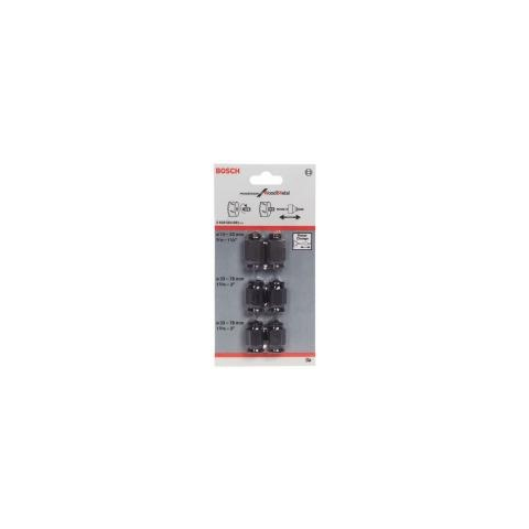 Bosch 6 részes, átmeneti adapter készlet más gyártmányú (pl. Starrett, Baco, Lenox stb.) szabvány lyukfűrészekhez (körkivágó). 2 db adapterrel 14-30 mm Ø (1/2” 20UNF menet), 4 db adapterrel 32-210 mm Ø (5/8” 18UNF menet).