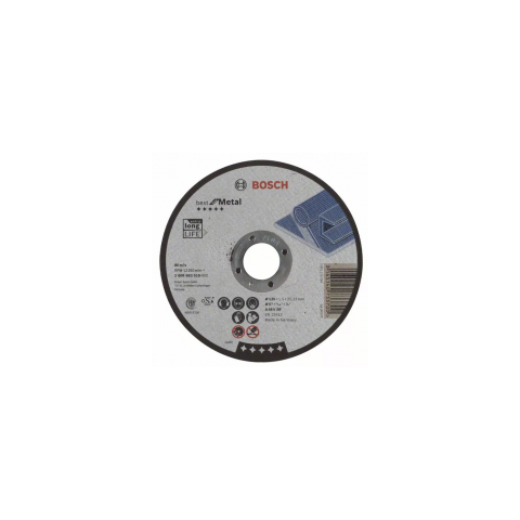 Bosch Darabolótárcsa, egyenes, Best for Metal A 46 V BF (2608603518)Specifikáció A 46 V BFÁtmérő 125 mmFuratátmérő 22,23 mmVastagság 1,5 mmA Best for Metal vágótárcsa kivételes élettartammal rendelkezik fémek vágásánál.Kerámiába ágyazott csiszolószemcséinek köszönhetően a tárcsa kopásállósága kiváló, és egyenletes minőséget garantál.A tárcsa vastagsága jelentősen megnöveli a felhasználhatósági élettartamátPrecíziós gyártású üvegszál hál