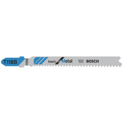 Fémlemezek vágása - A T 118 B Basic for Metal szúrófűrészlap fémek egyenes vágására alkalmas. Hullámvonalban álló mart fogazata ideális különleges előírások nélküli vágásokhoz. A teljesen átedzett, kiváló minőségű gyorsacél fűrészlap anyaga normál szilárd