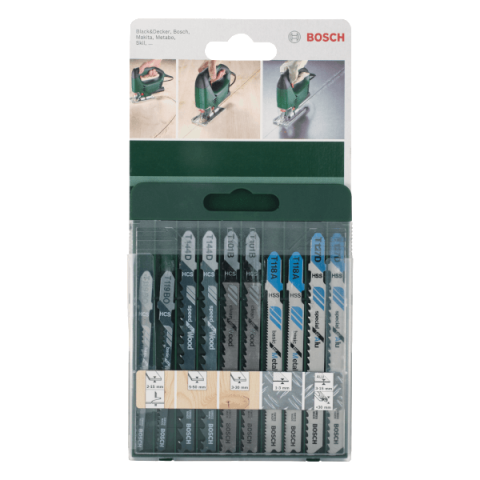 1 kép Bosch DEKOPÍR FŰRÉSZLAP KÉSZLET 10 RÉSZES T-SZÁR, FÁHOZ/FÉMHEZ
