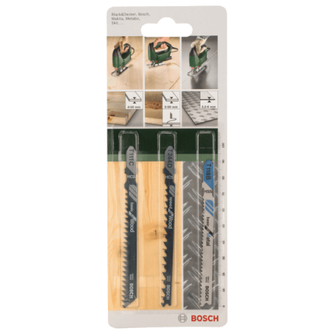 1 kép Bosch DEKOPÍR FŰRÉSZLAP KÉSZLET 3 RÉSZES T-SZÁR, FÁHOZ/FÉMHEZ