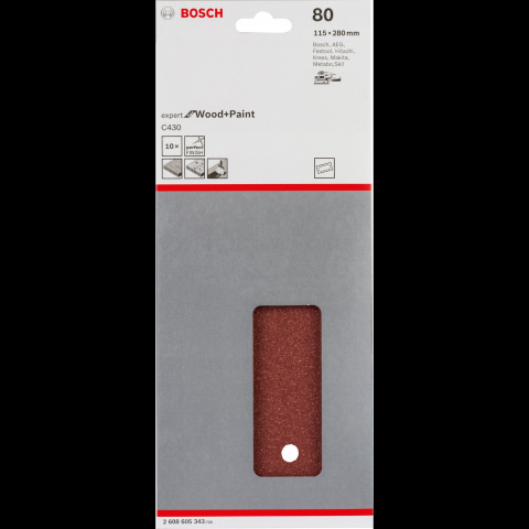 1 kép Bosch EXPERT C430 csiszolópapír rezgőcsiszolókhoz, fa és festék, 115x280 mm, G80, 10db (2608605343)