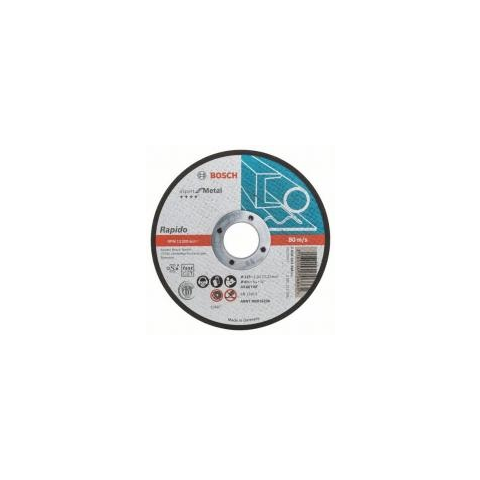 Bosch Expert for Metal Rapido egyenes darabolótárcsa. Specifikáció : AS 60 T BF. Fémekhez való darabolótárcsák magas követelményekhez. Megfelelő kézi sarokcsiszolókhoz. Maximális kerületi sebesség: 80 m/s (függ a fordulatszámtól és a tárcsaátmérőtől). Rendkívül hosszú élettartam, gyors és tiszta vágások sorjaképződés vagy kék elszíneződés nélkül.Furatátmérő: 22.23 mm Vastagság: 1 mm