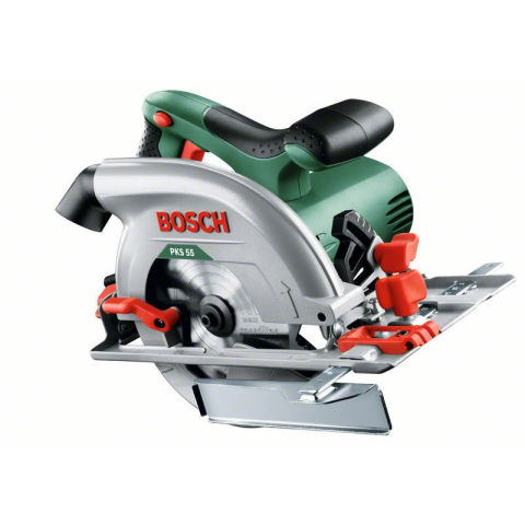 BOSCH Körfűrész PKS 55 / 1200 W Kompakt kialakítás a gép legjobb uralása érdekében.A vágásmélység és a szög egyszerű beállítása.Egyszerű fűrészlap csere a tengelyrögzítés révén.A talplemez hornya illeszkedik a vezetősín-rendszerbe.
