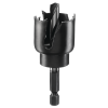Lyukfűrész spotlámpához. Szabadalmaztatott fogkialakítás a gyors munkavégzés érdekében. Egyrészes rendszer a precíz forgás érdekében. 1/4"-es hatszögletű befogóba vagy minden szabványos tokmányba közvetlenül behelyezhető. Puhafa, faforgácslemez, illetve építési fa/szerkezeti fa/fagerenda megmunkálására alkalmas. Átmérő: 30 mm.