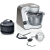 Konyhai robotgép Bosch Serie 4 MUM 5 - multifunkciós, bolygóműves keverés, 1000 W teljesítmény, műanyag belső áttétel, műanyag burkolat, keverőtál anyaga rozsdamentes acél, keverőtál űrtartalma 3,9 l, 7 sebességfokozat, PULSE gomb, lengőkar, biztosíték, funkciók habverés, keverés, dagasztás és tömegmérés, tartozékok ballon habverő, dagasztószár, keverő habverő (spatulás), fedél és beöntő karima, zajszint 76 dB, kábel hossza 1,1 m, tömege 5,4 kg, mérete