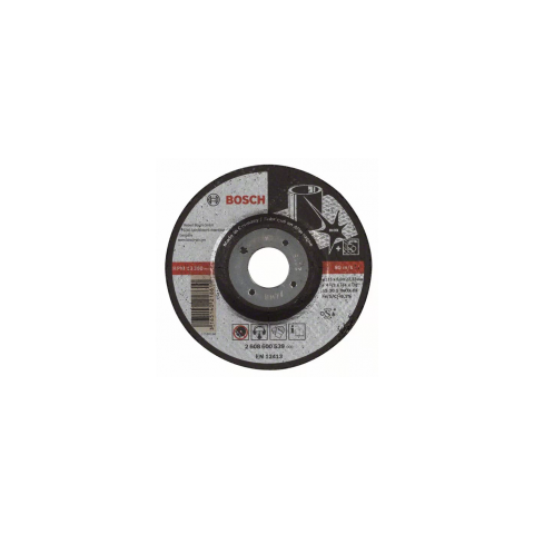 Bosch Nagyolótárcsa, hajlított, Expert for Inox 115 mm X 6 mm (2608600539)Specifikáció AS 30 S INOX BFÁtmérő 115 mmFuratátmérő 22,23 mmVastagság 6,0 mmAz Expert in Inox csiszolótárcsa hosszú életidőt és maximális biztonságot nyújt a rozsdamentes anyagok megmunkálásánál.Alumínium-oxid csiszolószemcsék, fenolgyantába ágyazott töltő-, és adalékanyagokkal, rozsdamentes anyagokhoz.Nem tartalmaz vas- és kéntartalmú, valamint klórozott töltőanyagotPrecíziós