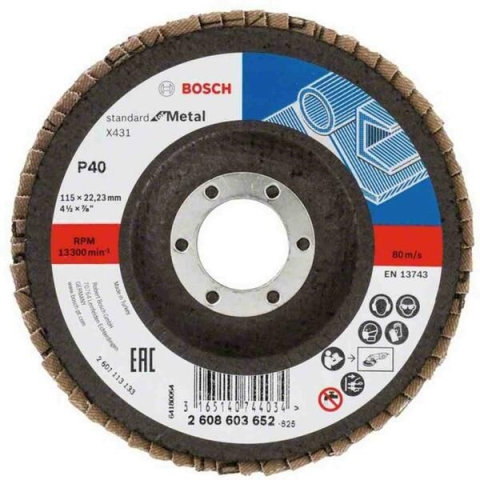 BOSCH Lamellás csiszolókorong kúpos 125 x 22,2 / P120 alu-oxid X431 Jó felületminőség - X431 Standard for Metal jó felületminőséget biztosít élek és hegesztési varratok lehordásáhozEnyhén töredező alumínium-oxid szemcsekeveréke robusztus és kopásálló,