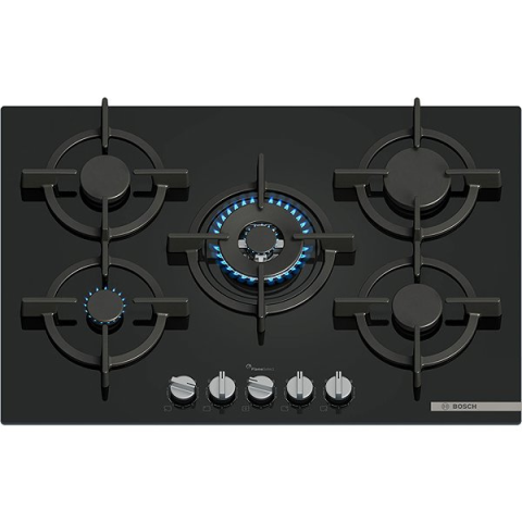 Főzőlap - gáz, beépíthető, 5 főzőzóna, égésbiztosító és gázszivárgás elleni védelem, független programozás minden főző zónához és wok égő, automatikus begyújtás, forgatható gombok, kerekített élek, keret nélküli, fekete üveg kivitel, üveg felület, FÖLDGÁZ és PROPÁN-BUTÁN csatlakozás, mérete 75,2 × 52 × 4,5 cm (Sz×Mé×Ma), a készülék csatlakoztatásához villanyszerelő szükséges, a készülék csatlakoztatásához gázszerelő szükséges Az e