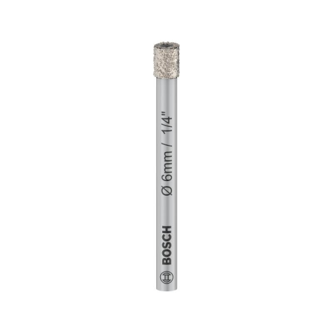 BOSCH PRO Száraz gyémántfúró 6 x 66 mm hengeres befogással Kemény és puha csempék száraz átfúrása hosszú élettartammal Kiváló minőségű gyémántszemcsék és mátrix az időtállóság és a pontosság érdekében Hárompofás fúrótokmányokkal kompatibilis hengeres b