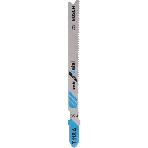 A Bosch Pro T 118 A Basic for Metal dekopír fűrészlap vékony lemezek (1 mm - 3 mm) vágására alkalmas. A csomag 3 darabot tartalmaz.