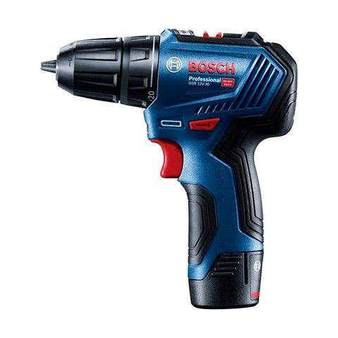 Akkus fúró -, szénkefe nélküli motor, maximum fordulatszáma 1600 ford/perc, max. forgatónyomatéka 30 Nm, a tokmány maximális befogóképessége 10 mm, nyomaték szabályozás, fordulatszabályozás, ergonómikus markolat, akkumulátor-állapot mérő és LED világítás, 2 db 2 Ah kapacitású akkumulátor a csomagban, tömege 0,72 kg A Bosch GSR 12V-30 Professional kompakt akkumulátoros fúró modern szénkefe nélküli motorral magas teljesítményt nyújt fúráshoz vagy csavaroz