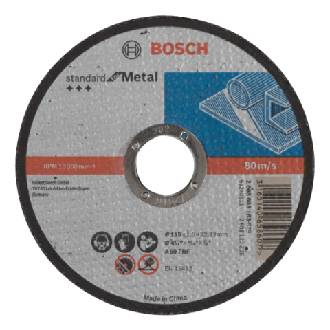 BOSCH Vágókorong fémre 125 x 1,6 x 22,2 mm Standard for Metal A 60 T BF Megbízható vágás - A Standard for Metal vágótárcsa megbízható teljesítményt nyújt fémek megmunkálása eseténA tárcsa általános fémvágáshoz használható alumíniumoxidból készülEz a tá