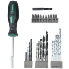 Bitfej készlet - lapos, kereszt PH, kereszt PZ és imbusz, mérete: PH1, PH2, PH3, PZ1, PZ2 és PZ3, szabvány, további tartozékok: adapter, kézi csavarhúzó és racsni, a készlet 19 db bitfejet tartalmaz, a bitfejek egy műanyag dobozban kaptak helyet A neves német márkától származó kifinomult 27 részes Bosch Promoline készlet mindent tartalmaz, amire szükséged lehet a mindennapi otthoni és műhelymunkákhoz – 5 leggyakrabban használt dugókulcsot, 19