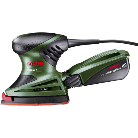 A PSM 160 A nagy teljesítményű, mindentudó csiszoló- és polírozógép a rezgőcsiszoló és a deltacsiszoló funkcióit ötvözi. Csiszolólapja a vasaló talpához hasonlít, a kétosztatúsága révén sokoldalúan és hatékonyan használható. Ezért a PSM 160 A a legkülönbözőbb csiszolási munkákra alkalmas: élek mentén, a sarkokban és nagy felületeken is. A csiszolólap elülső része elforgatható. Névleges teljesítményfelvétel 80 W. Csiszolófelület 104 cm?.