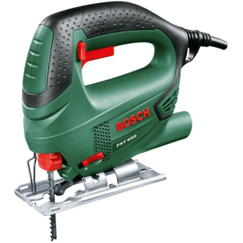 Dekopírfűrész - elektromos, 500 W teljesítménnyel, max. vágási mélység 65 mm, fűrészlapcsere szerszám nélkül, fűrészpor elszívása, állítható vágási szög, ergonomikus fogantyú, antivibrációs rendszer és porfújás, tömege 1,6 kg, fűrészlap befogás típusa T, vágási teljesítmény fába 65 mm, acélba 4 mm, fűrészlap és koffer a csomag része Szereld fel műhelyedet minőségi szerszámokkal, mint például a Bosch évek óta bevált PST 650 (CT) szúrófűrés