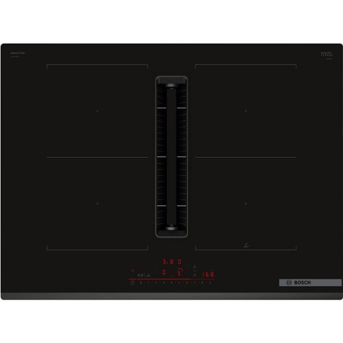 Főzőlap - indukciós, beépíthető, 4 főzőzóna, gyerekzár és maradékhő jelzés, főzőzónák egyesítése és booster, időzítő, érintéses vezérlés, Home Connect kompatibilis, hiba diagnózis és mobilalkalmazás, csapott és kerekített élek, keret nélküli, fekete üveg kivitel, üveg felület, 230 V csatlakozás, mérete 71 × 52,2 × 22,3 cm (Sz×Mé×Ma), a készülék csatlakoztatásához villanyszerelő szükséges A minőségi Bosch indukciós főzőlap segítségével