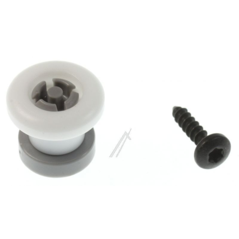 Eredeti gyári vezetőgörgő rögzítőcsavarral Bosch és Siemens mosogatógépek felső kosársínjéhez. Biztosítja a kosár stabil és zökkenőmentes mozgását az oldalfalon.