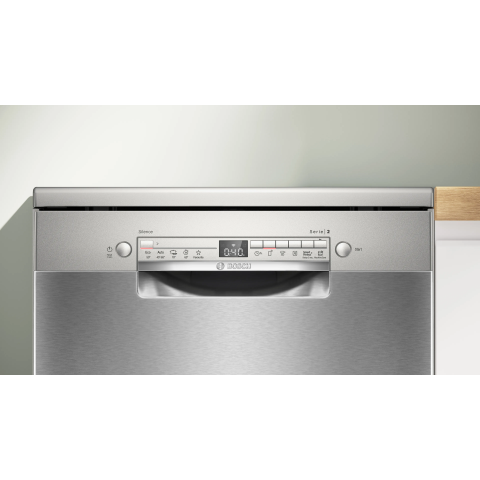 Mosogatógép - energiaosztály C, zajszint 46 dB, akár 13 étkészlet ciklusonként (ECO program), gyerekzár, túlcsordulás elleni védelem és AquaStop, távoli bekapcsolás, mérete 84,5 × 60 × 60 cm (Ma×Sz×Mé) A mosogatógép használatával munkát, vizet és időt takaríthatsz meg. A standard (60 cm széles) Bosch mosogatógép elsősorban olyan háztartásokba alkalmas, ahol rendszerint főznek. A szabadonálló mosogat