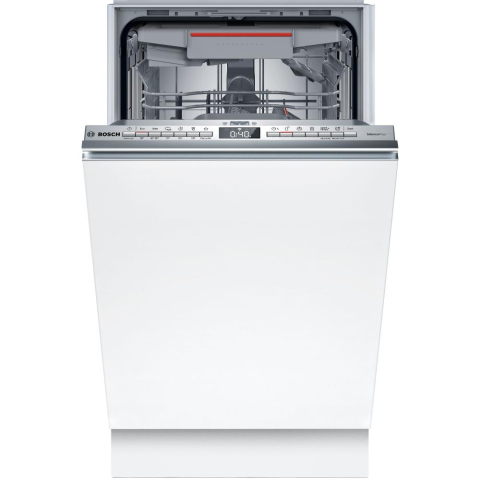 Design:Custom panel-ready: YesCutlery basket type: Bosch VarioDrawerBuilt-in water softener: YesUpper basket adjustable height levels: 3Control panel colour: Stainless steelCord length: 1.75 mUpper basket adjustable height: YesDoor colour: Not applicableAppliance placement: Fully built-inCutlery compartment type: DrawerBuilt-in display: YesOutlet hose length: 2.05 mInlet hose length: 1.65 mProduct size: Slimline (45 cm)Control type: ButtonsTub material: Stainless steelPower:Water consumption per