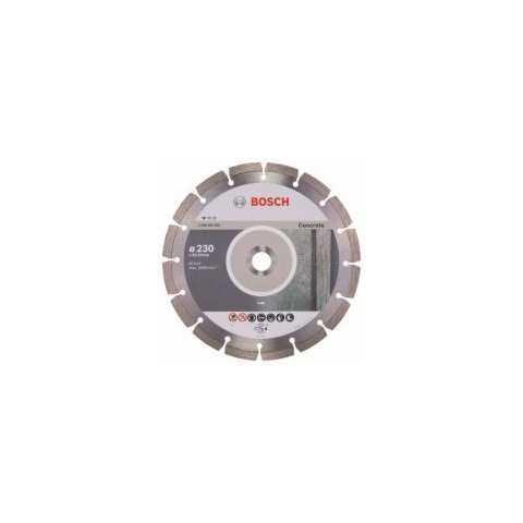?Bosch Standard for Concrete gyémánt darabolótárcsa. Megbízható teljesítmény betonban, kedvező áron. Nagy vágási sebesség. A gyémánt darabolótárcsa szinterezett vágóperemmel rendelkezik. Furatátmérő: 22,23 mm Vágásszélesség: 2,3 mm Szegmensmagasság: 10 mm