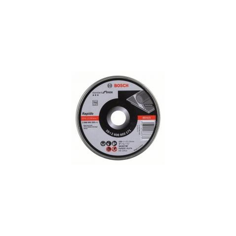 Bosch Standard for Inox egyenes darabolótárcsa. Specifikáció : WA 60 T F. Inoxhoz való darabolótárcsák kiváló teljesítménnyel, vonzó áron. Megfelelő kézi sarokcsiszolókhoz. Maximális kerületi sebesség: 80 m/s (függ a fordulatszámtól és a tárcsaátmérőtől). Fe/S/Cl