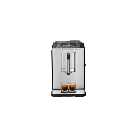 Egyszerűen tökéletes kávé, egyszerűen maximális kényelem. - Intelligens fűtőegység: tökéletes forrázási hőmérséklet és aroma a SensoFlow System-nek köszönhetően- OneTouch funkció: minden kávéspecialitás egy gombnyomással - függetlenül attól, hogy espresso, cappuccino vagy latte macchiato- MilkMagic Pro: a cappuccino és a latte macchiato egyszerűen elkészíthető. Öntsük a tejet a pohárba: a többi már csak egy gombnyomás- A kerámia őrlőmű le fogja nyűgözni hosszú élettartamával és azzal, ahogy kinyeri a maximális aromát minden kávéból- Kényelmi csomag: Az innovatív kiegészítő funkciók, például az intuitív kijelző megfelel a legmagasabb követelményeknek Teljesítmény A MilkMagic segítségével a tökéletes tejhab garantált. Akár kapucsínót, akár latte macchiato-t készít, az automatikus habosítás mindig közvetlenül a csészében illetve a pohárban hozza létre a tökéletes, extra finom pórusú tejhabot — amely gondoskodik róla, hogy a habzó réteg gyönyörűen megüljön a tej tetején. Egyszerűen öntse bele a csészébe a tejet és habosítsa fel, majd adja hozzá a kávét — és élvezze a tökéletes eredményt. Kényelem Egyéni kitöltési mennyiségek: IndividualCup Volume. Kávéélményének személyre szabásához az IndividualCup Volume lehetővé teszi, hogy az előre beállított kávéscsésze méreteket – kicsi, közepes és nagy – a display segítségével öt különböző lépcsőben utánállítsa, ami biztosítja, hogy a kiöntési mennyiség tökéletesen megfeleljen az Ön csészéjéhez. Kétcsészés választási opció — mert a megosztott élvezet dupla élvezet. Az eszpresszó és kávé kétcsészés választási opciójának sajátossága a két őrlési és kifőzési folyamat — gyorssá és egyszerűvé teszi a kávéfőzést két személyre. Higiénia Kivehető forrázó egység: Egyszerű higiénia. A higiénikus, még a készülék belsejének tisztítása érdekében is, a forrázó egységet egyszerű kivenni, leöblíteni folyó vízzel, majd visszahelyezni. Calc`nClean. A tartós élvezetért. Amikor Ön egy Bosch gyártmányú, automatikus kávéfőző gépet választ, akkor a minőség, teljesítmény, megbízhatóság és az elérhető legtökéletesebb kávé mellett dönt. Az Ön tartós élvezetének biztosítására, és készülékének hosszú élettartama szavatolására, a Calc`nClean funkció egy kombinált tisztítási és vízkőmentesítési programot kínál, hogy egy lépésben távolítsa el a vízkőlerakódásokat és a kávémaradványokat. Ízvilág- Innovatív SensoFlow System: az innovatív fűtőelem garantálja a maximális espresso kávéélményt újra, meg újra, hála az ideális, állandó forrázási hőmérsékletnek- "One-touch" funkció: Eszpresszó, Kávé, Cappuccino, Latte Macchiato elkészítése egy gombnyomásra- Opcionális BRITA Intenza vízszűrő: javítja a kávé ízét és illatát, mert kiszűri a vízben lebegő apró szennyeződéseketKényelem- MilkMagic Pro: a cappuccino és a latte macchiato egyszerűen elkészíthető. Öntsük a tejet a pohárba: a többit egy gombnyomással elkészül- A kávé kifolyó és a tejhabosító magassága állítható: akár a cm magas Latte Macchiato pohár is aláfér- Az egyszerű karbantartást és a gyors tisztítást a készülék előlapján lévő könnyen hozzáférhető szervizajtó biztosítja- Kivehető víztartály: 1.4 lTeljesítmény- A kerámia őrlőmű le fogja nyűgözni hosszú élettartamával és azzal, ahogy kinyeri a maximális aromát minden kávéból- Külön adagolható : tejhab- Csökentett felfűtési idő: leggyorsabb első csésze kávé!- Vízpumpa, 15 bar nyomás- 15.000 csészés garancia: állandó magas minőségű készülék az elsőtől a 15000 csészéig (érvényes az első 24 hónapban, csak háztartási használat esetén)Higiénia- Kivehető forrázó egység: könnyen és higiénikusan tisztítható folyó víz alatt- Automatikus öblítés a készülék bekapcsolásnál, kikapcsolásnál- Minden - a tejes italok elkészítéséhez használt - rész könnyen kivehető, egyszerűen tisztítható és mosógatógépben mosható- Kivehető cseppgyűjtő- és kávézacc tálca, melyek mosogatógépben mosogathatóak- Calc`nClean: automata vízkőtelenítő és tisztító programTovábbi tulajdonságok- Aromavédő tetővel ellátott kávébab tartály (250 g)- Egyénileg változtatható kávé őrlési fokozat- Kijelzőn használt nyelv programozható- Elektromos csatlakozókábel hossza: 1 m- Teljesítmény: 1300 WTartozékok- Alaptartozékok:- További megvásárolható tartozékok: tisztító tabletták (TZ60001), vízkőmentesítő (TZ80002), BRITA Intenza vízszűrő (TZ70003), automata eszpresszó kávégép gondozó szett (TZ80004), hőálló tejtartály (TZ80009N)