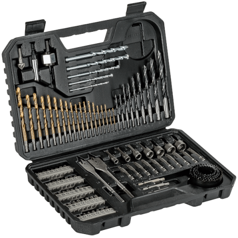 Műanyag koffer mérete:(hxszxm) 95 x 255 x 236 mm, súlya:1.522 kg.A készlet tartalma: 9 fafúró: Ø 3/3/4/4/5/6/7/8/10 mm 19 HSS-TiN fémfúrók: Ø 1,5 / 1,5 / 2/2/2 / 2,5 / 3/3/3/3 / 3.2 / 3.5 / 4 / 4.5 / 4.8 / 5 / 5.5 / 6/7 mm 5 Kőzetfúró: Ø 4/5/6/8/10 mm 40 csavarhúzó bit, L = 25 mm: 4/4/6/6/7/7 mm; Phillips PH 0/0/1/1/2/2/2/3/3/3; Phillips PZ 0/0/1/1/2/2/2/3/3/3; Torx T 10/10/15/15/20/20/25/25/30/40; Belső hatszög SW 3/4/5/6 13 csavarhúzó bit, L = 50 mm: 4/6 mm-es rés; Phill
