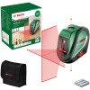 A Bosch UniversalLevel 2 integrált függélyezőpontokkal rendelkező, keresztvonalas lézer kiváló minőségű, fényes lézerdiódákat használ, és intuitív használatot, valamint precíz munkavégzést tesz lehetővé. Így a nagy pontosságot igénylő projektek is könnyen elvégezhetők. A három gyárilag beprogramozott üzemmód (önszintező lézerkereszt, önszintező lézerkereszt függélyezőpontokkal, dőlésszög funkció) egyszerű beállítást és átvitelt tesz lehetőv