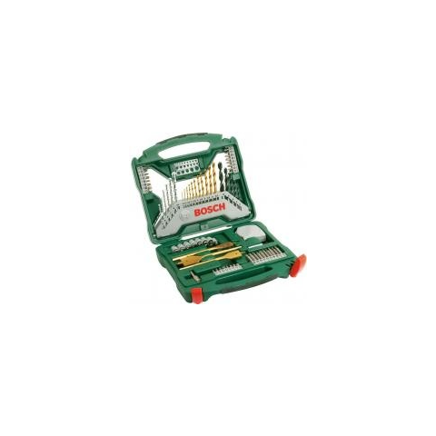 Bosch X-Line Titánium szett 70 részes, tartalma:	- db 11 HSS-TiN fém fúró Ø 1,5-6,5 mm- 6db keményfém falazat fúró Ø 4-10 mm- 5 db fafúró Ø 4-10 mm- 3 db bit, Titán Ø 16/22/32 mm- 24 db csavarhúzó fej L = 25 mm PH 0/1/1/2/2/3, PZ 0/1/1/2/2/3, SL 4/6/7, HEX 3/4/5/6,              T 10/15/20/25/40- 10 db csavarhúzó fej L = 50 mm PH 1/2/3, PZ 1/2/3, SL 4/6, T 20/25- 7 mm dugókulcs 4/5/6/7/8/9/10Adapter dugókulcs, mérőszalag, átmérő mérő, mágneses univerzális tartó, s