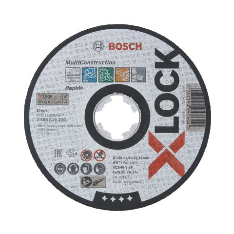 Vágótárcsa - átmérője 125 mm, vastagsága 1,6 mm, kő, fém, műanyag vágásához alkalmas A sarokcsiszolóhoz használt 1,6 mm vastag Bosch X-LOCK Multi Material vágótárcsa hatékonyan vágja a fém, rozsdamentes acél, alumínium, tégla, PVC és más anyagokat. Kiváló minőségű anyagokból k