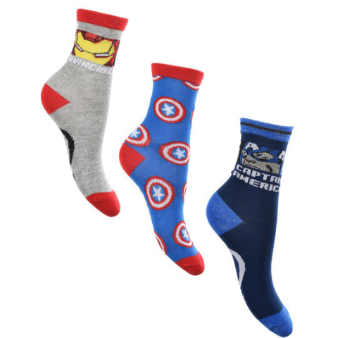Avengers, Bosszúállók Gyerek zokni Az ár 3 pár zoknira vonatkozik! Anyaga: 70% pamut, 18% poliészter, 10% poliamid, 2% elasztán Méret: 27/30